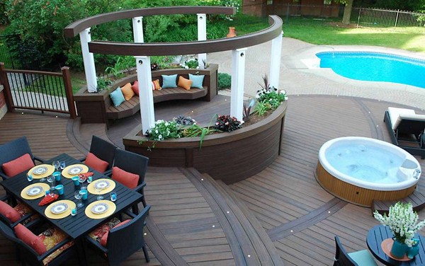 Eine wunderschöne Terrasse ist die perfekte Ergänzung zu einer entspannenden Oase im Hinterhof. Versetzen Sie den in- oder oberirdischen Pool Ihrer Träume mit spektakulären Terrassendielen von Trex . Stöbern Sie durch unsere Kollektion inspirierender Bilder für Beckenrand-Decks oder Terrassendielen-Optionen für Whirlpools und mehr. Warp-resistente Terrassendielen können attraktiv und auffällig sein und Ihren Hinterhof zum Neid der Nachbarschaft machen. Lassen Sie sich inspirieren und lernen Sie, wie man eine Terrasse um einen Pool baut.